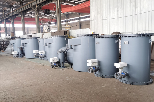 分匯器是一個三通閥,通過導向板的切換可使膠球進入需要清洗的一側凝汽器中工作。一般一臺機組需兩臺分匯器,其進口通徑為DN100,分配口為DN89,膠球投用時可通過窺視窗觀察運行情況。